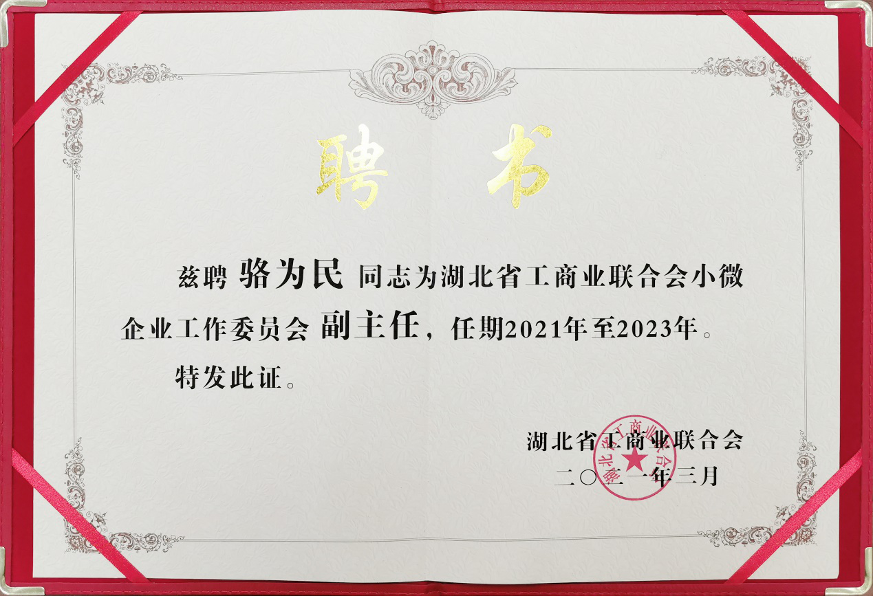 熱烈祝賀駱為民董事長當選湖北省工商業聯合會小微企業工作委員會副主任