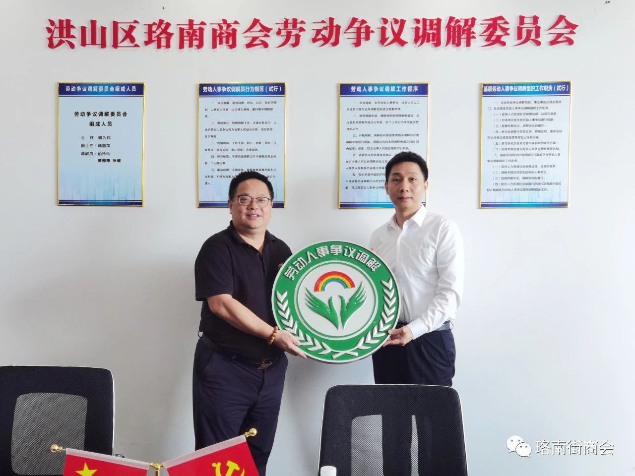 我司董事長參加珞南街商會勞動爭議調解委員會授牌儀式