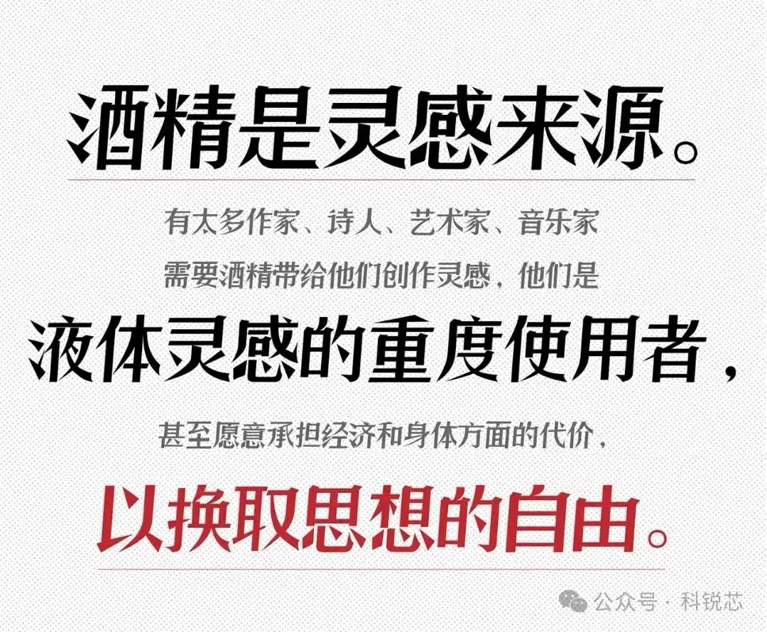 酒精是靈感的來源。綜觀世界各地的文化史,有一個公認的“真理”就是:酒精是靈感的來源。有太多作家、詩人、藝術家、音樂家需要酒精帶給他們創作靈感。